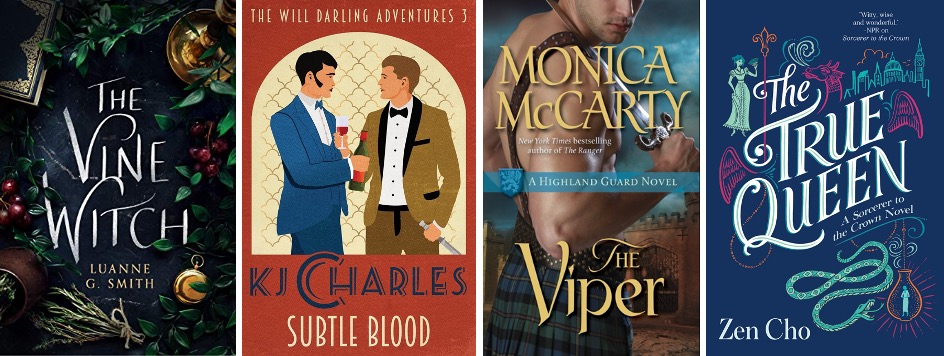 Subtle Blood (Will Darling Adventures #3) by KJ Charles: I’m sad to say goodbye to this delightful series. Charles’s writing is as sharp and incisive as ever, and the characters all get exactly the ending I wanted for them. It’s easy to imagine how their lives after “the end” will be – filled with adventure, as ever. My only disappointment in this book was that it didn’t have quite so much literal and figurative backstabbing, which was always such fun in the previous books, but I guess the characters have to reach a semi-healthy state at some point. And that’s really what this book is about – relationships and personal growth, which is lovely, if fairly peaceful.