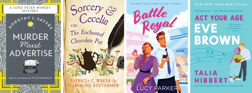 Sorcery & Cecelia: or The Enchanted Chocolate Pot (Cecelia and Kate #1) by Patricia C. Wrede and Caroline Stevermer: I’d never heard of this one until a book club friend picked it, and I was utterly charmed! Kate and Cecelia are two clever, practical young women who suddenly find themselves in the middle of a magical mystery and set out to untangle everything with good sense and, okay, occasional over-enthusiasm. (Don’t ask why I’m so alliterative today! I don’t know!) The novels combines many of my favorite things – humor, romance, mystery, Regency England, an epistolary format, etc. – and I couldn’t get enough. I’m already looking forward to reading the rest of the trilogy.