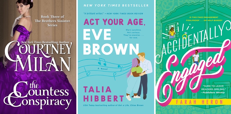 And now, I have a couple of contemporary romance recommendations, too! If you want explicit romance, Act Your Age, Eve Brown by Talia Hibbert is a delightful, bubbly romantic comedy, with some scorching heat. But if you prefer closed-door romance, Farah Heron’s Accidentally Engaged may be for you. It’s warm, sweet, and still makes me laugh just thinking about it, even months after reading.