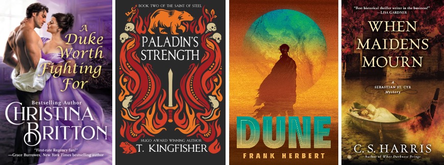 A Duke Worth Fighting For (Isle of Synne #3) by Christina Britton: A gentle but mostly forgettable romance. The leads are sweet, and I wanted all the good things for them, but – and maybe this was just my own reading – they felt incredibly unsuited to the melodramatic elements of the story.