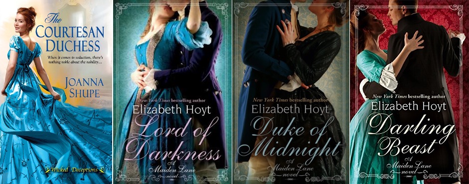 Maiden Lane #5-7 by Elizabeth Hoyt: More romance and much more drama — this time with a good dose of action thrown in! This series is set in the mid-1700s, which is a great change of pace from all the Regency romances out there, and there’s a good deal of swashbuckling to go along with the society scenes. So far, all of the couples are unique and interesting, but again, there are some tropes that make me roll my eyes a bit. Right now, I’m planning to read one more because I like the heroine from her appearances in these books, but then I’ll step away for a while and come back when it strikes my fancy.