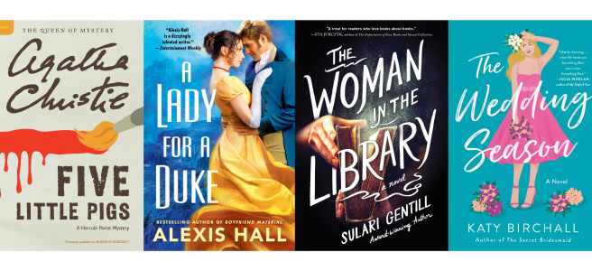 The thing I love about having not one but two comfort genres is that when romance fails me, murder mysteries will come through. I had high expectations for Alexis Hall’s A Lady for a Duke and Katy Birchall’s The Wedding Season (which, okay, is technically only romance-adjacent, being more truly Women’s Fiction), but both fell short. However, I did find two other books that absolutely hit the spot. Well. Really, I found three, but I’m having such a good time savoring every minute of A Marvellous Light by Freya Marske that it may not make it to the Roundup for a couple of weeks! But some books make you slow down because you love them so much, and some make you race to the end because what’s going to happen??? And with this week’s winners, Five Little Pigs and The Woman in the Library, it was definitely the latter situation. Murder mysteries will do that.